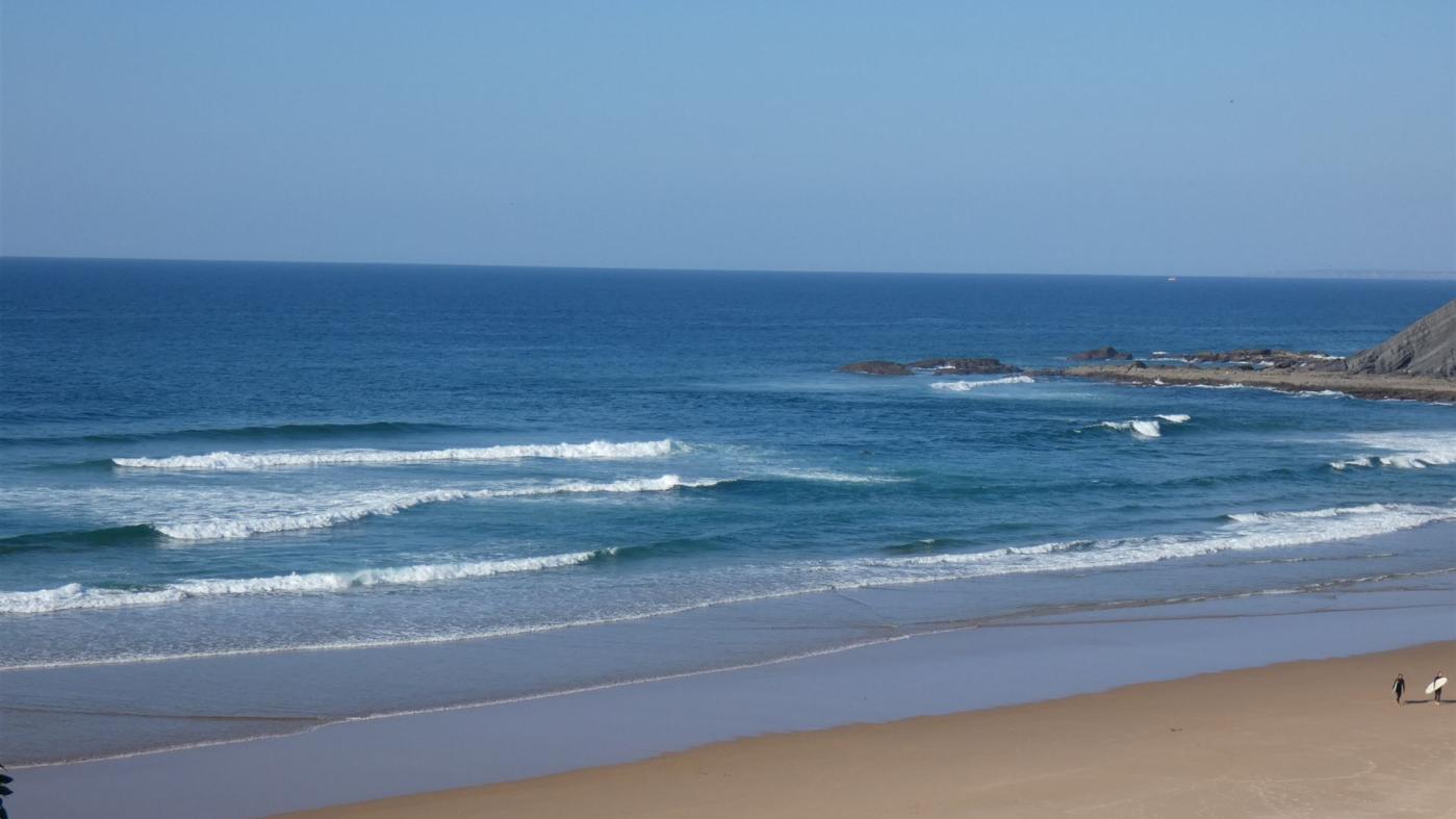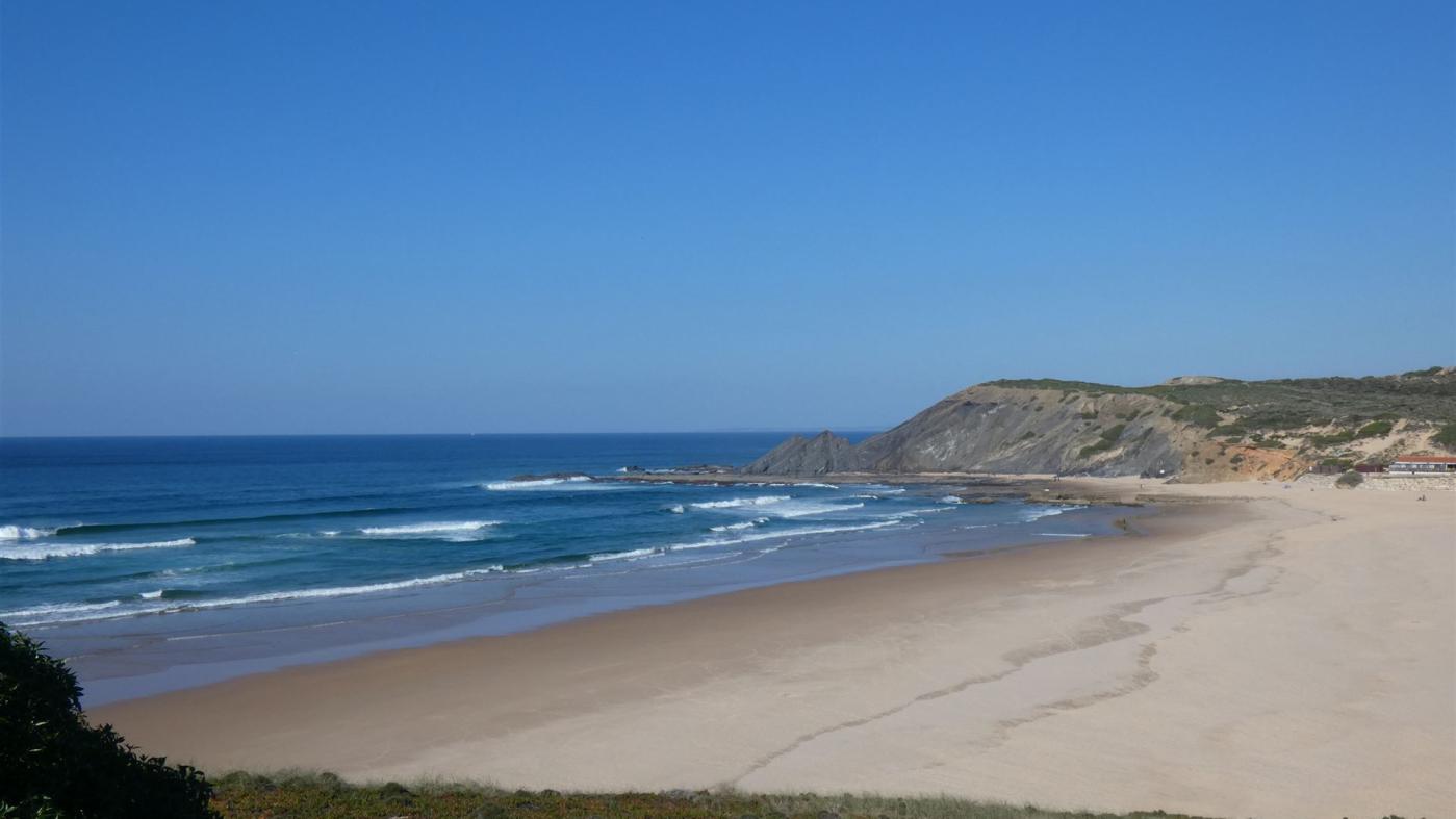 Auf dem Weg dorthin gibt es traumhafte Aussichtspunkte. Die Fahrt wird unterbrochen am Praia do Monte Clerigos. Mit einem tollen Blick auf den bewegten Atlantik und Surfer, die eine Welle suchen, kann man ganz entspannt das Essen genießen.
