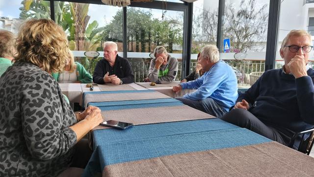 Familie Batz meldet sich, die Beiden kommen heute Nachmittag zum Kaffee trinken vorbei. Sie sind mit ihrem Wohnmobil auf dem Campingplatz in Alvor. Wie lange sie noch dort sind, wissen sie noch nicht genau. Hildegard warten noch auf die bestellte Brille und Dietmar will noch Reparaturen am Camper vornehmen. Außerdem müssen sie noch checken, wann die Fähre nach Marokko geht. Schließlich wollen sie mit ihrem Wohnmobil nach Marokko übersetzen. Zum Abschluss des Tages wollen wir gemeinsam essen gehen. In dem Restaurant, das ausgesucht wurde, geht nur der Anrufbeantworter. Dieter hat gestern darauf gesprochen und einen Tisch für heute Abend bestellt. Gemeinsam fahren wir hin, im Restaurant ist alles dunkel. Da wir eine Viertelstunde zu früh sind, warten wir noch bis zur offiziellen Öffnungszeit ab. Nichts tut sich. Es wird kurzfristig umgeplant, wir fahren ins Eden. Es ist nicht viel los, wir sind bis jetzt die einzigen Gäste. Das ändert sich auch nicht, bis wir gehen.