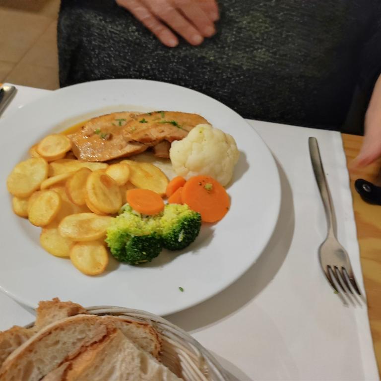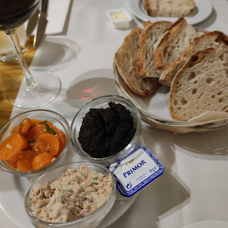 Nach dem Marktbesuch wollen wir noch zu Mittag essen und gehen in das Lokal, in dem wir heute Morgen Kaffee getrunken haben. Am Eingang wird Werbung für ein Tagesmenü zum Preis von 10 Euro gemacht. Im Lokal ist viel Betrieb und müssen erst einmal warten, bis ein Tisch frei wird. Beim Bestellen heißt es, das Tagesmenü ist aus, nur noch a la cart. Auch ok. Wir bestellen den geschmorten Hasen. Da das Essen frisch zubereitet wird, dauert es bis das Gericht auf den Tisch kommt. Was kommt ist allerdings enttäuschend und seinen Preis nicht wert. Für zwei Personen gibt es 5 sehr kleine Pellkartoffeln und 6 Stückchen Hasen, an denen die Knochen überwiegen. Und dafür 28 €uro, für Portugal einfach überteuert. Abhaken als Erfahrung.
