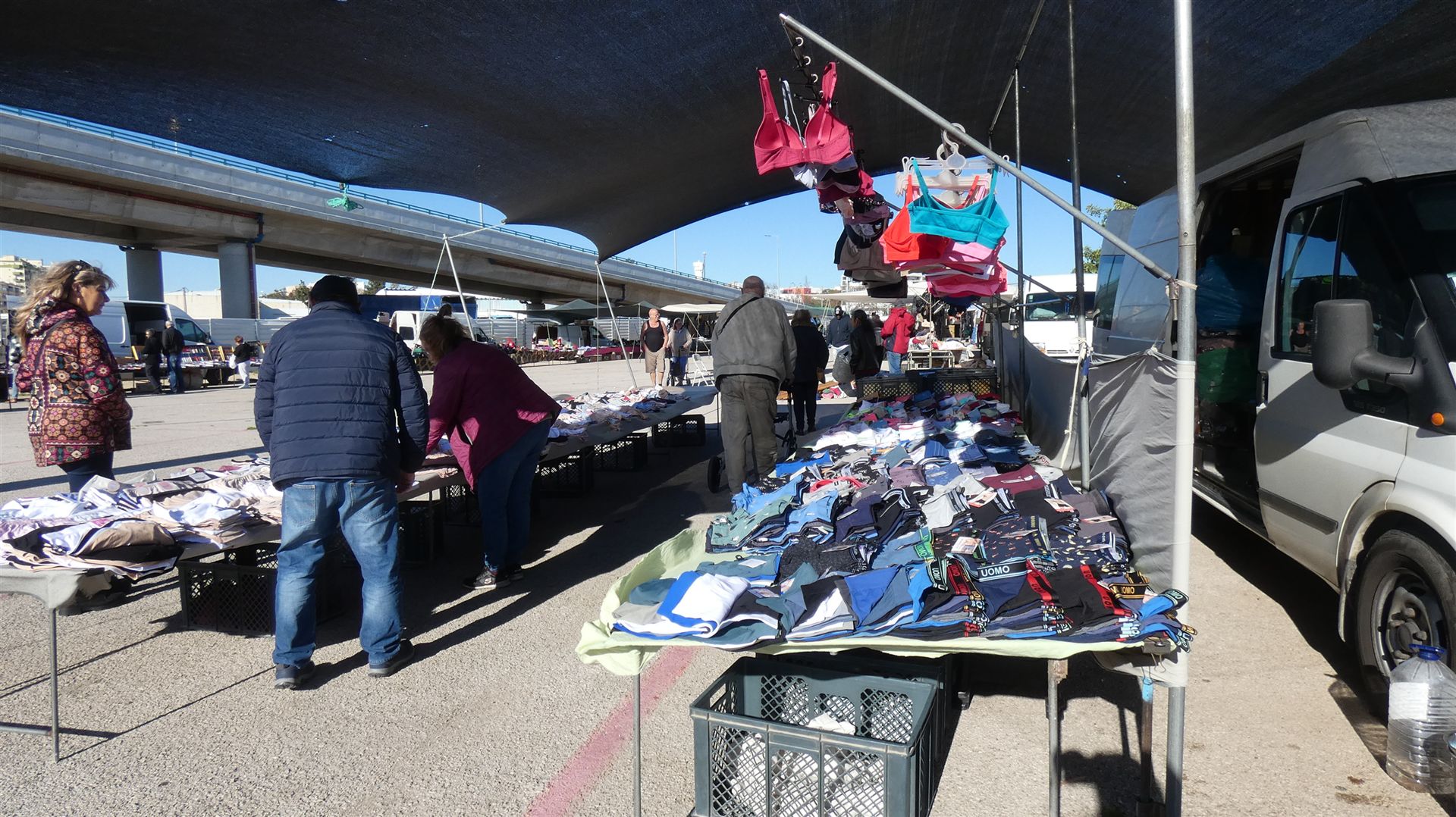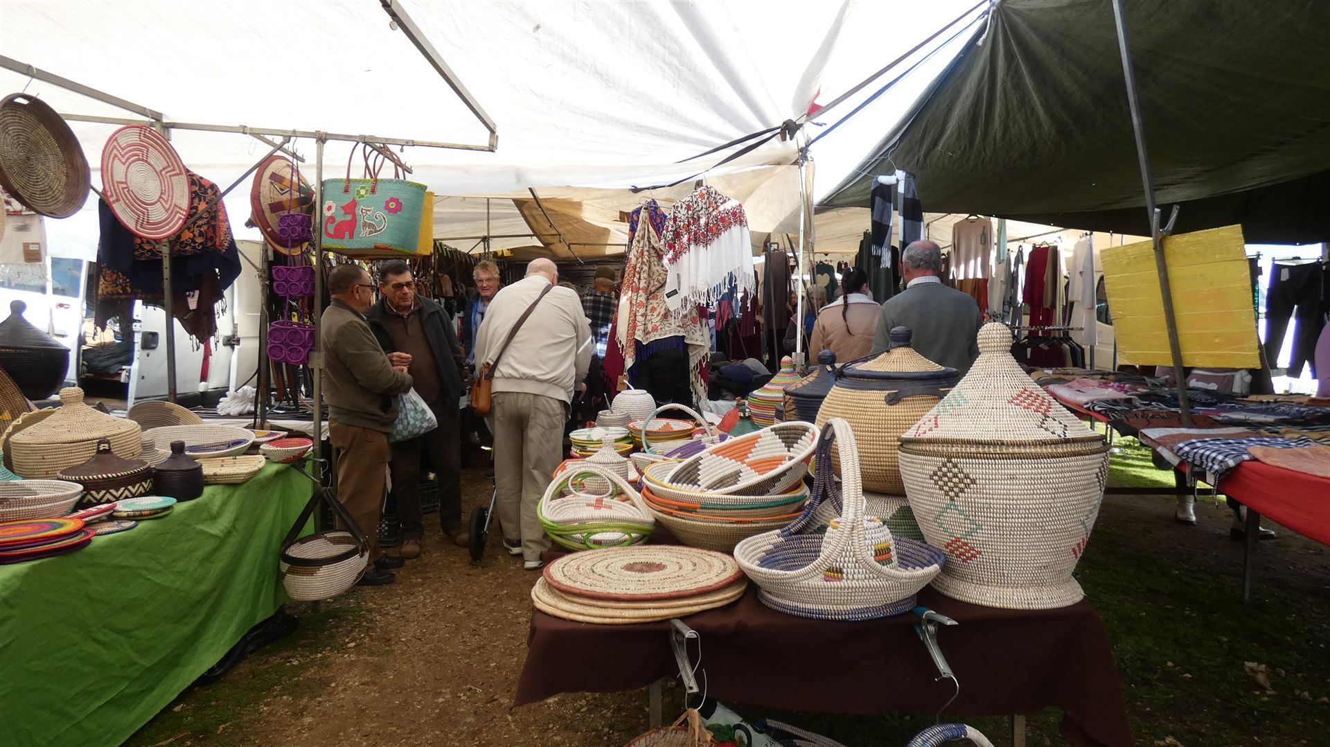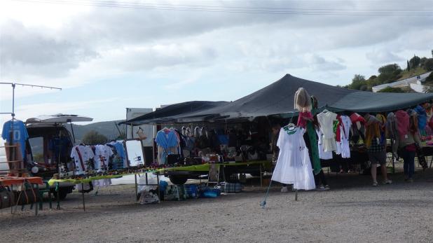 Die Vorräte müssen wieder aufgefüllt werden. Das verbinden wir gerne mit einem Marktbesuch. Der Gypsie-Markt in Loule bietet sich an. Meistens sind die Parkplätze am Marktgelände gut belegt. Heute ist es anders, es sind noch jede Menge Parkplätze vorhanden. Ein ähnliches Bild auch auf dem Gelände, nur ca. ein Drittel der Verkaufsfläche ist mit Ständen belegt. Eine Folge des unbeständigen Wetters, da sind die Marktbeschicker auch etwas zurückhaltender. Der Rundgang schnell beendet.
