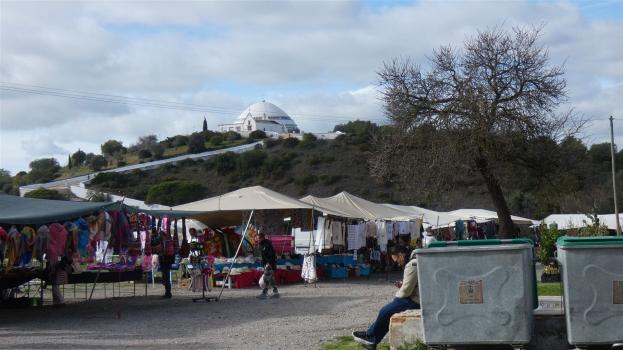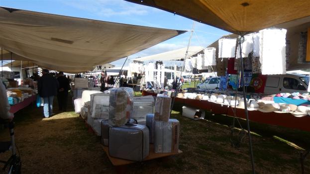 Montags ist Markttag in Algoz. Der Markt soll einer der größten an der Algarve sein. Schon bei der Parkplatzsuche merkt man, das das stimmt. Wir brauchen mehr als 30 Minuten, bis ein Auto wegfährt und wir unseren Wagen abstellen können. Der Bummel kann beginnen. Viele Händler bieten ihre Waren an, anders als z. B. in Loule. Auf dem Weg an den Ständen vorbei, landet auch einiges in unserer Tasche. Unser Lieblingstand mit Fettgebackenem ist auch da, eine Pause wird eingelegt. Ein guter Abschluss des Marktbesuches.