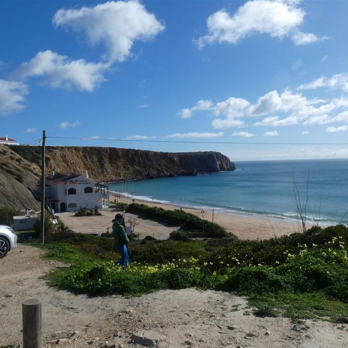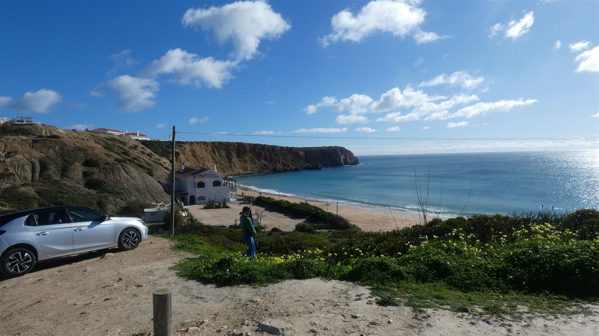 Gemütlich fahren wir an der Küste entlang und stoppen in Sagres. Der Wind weht kräftig und gefühlt ist es einige Grad kälter, als das Thermometer anzeigt. Leider ist das Gelände des Leuchtturms immer noch geschlossen, schade. Der berühmte Stand von “Letzte Bratwurst vor Amerika“ befindet sich noch bis zum 16. März 2026 im Winterurlaub. Bratwürste gibt es nur in der Saison.